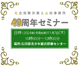 | 社会保険労務士 山田事務所 石川県金沢市鈴見台1丁目5番14号 TEL:076-221-2114 FAX:076-221-5774 |